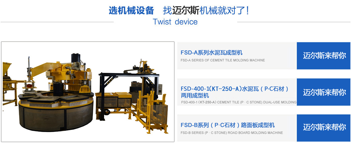 常熟市邁爾斯機(jī)械有限公司是一家集研發(fā)、生產(chǎn)、銷售于一體的建材機(jī)械高科技企業(yè),其前身為2011年注冊(cè)創(chuàng)辦的“常熟市虞山鎮(zhèn)豐順達(dá)機(jī)械配件廠”,經(jīng)過(guò)多年的努力,于2017年注冊(cè)成立“常熟市邁爾斯機(jī)械有限公司”,專業(yè)生產(chǎn)模壓水泥彩瓦機(jī)、P.C石材機(jī)、轉(zhuǎn)盤式成型機(jī)、彩色路面磚機(jī)等綠色建材設(shè)備。公司以市場(chǎng)為龍頭,以技術(shù)為導(dǎo)向,開(kāi)發(fā)了系列化、標(biāo)準(zhǔn)化的適銷對(duì)路的機(jī)械產(chǎn)品,并且注冊(cè)了多項(xiàng)國(guó)家專利技術(shù),銷售范圍覆蓋全國(guó),并且出口越南、老撾等東南亞和其它國(guó)家。